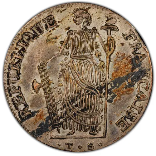 Obverse lettering REPUBLIQUE FRANÇAISE . T . S .