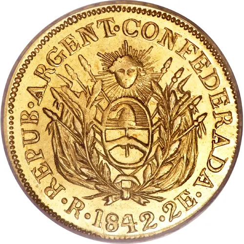 | Ön yüz lejandı | REPUB·ARGENT·CONFEDERADA· R·1842·2E |