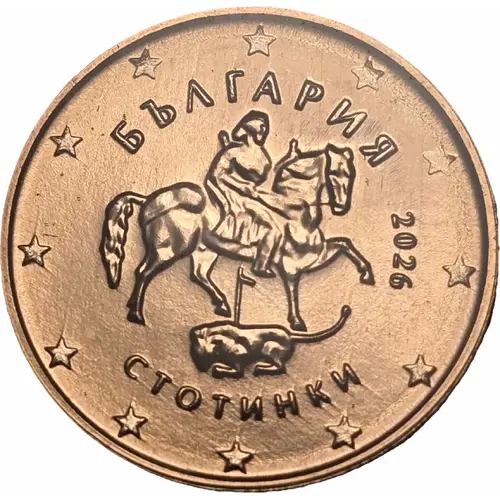 | Beschrijving voorzijde | Displays the Madara Horseman (Мадарски конник) — the ancient rock relief symbol of Bulgaria. Marked with „БЪЛГАРИЯ“, the year 2026, and the EU stars. |