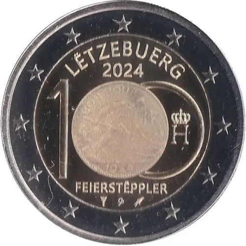 The design depicts in its centre the representation of the Luxembourg coin issued in 1924 showing a steel industry worker, this representation being integrated in the figure ‘100’ as indication of the anniversary of the first issuance of one of the longest circulating Luxembourg franc coins. The name of the issuing country LÉTZEBUERG as well as the year date 2024 appear at the top of the design. The bottom of the design depicts the word ‘FEIERSTÉPPLER’, the common and popular designation of this coin. The monogram (letter ‘H’ with a crown) is a representation of Grand Duke Henri. As the producing mint is not yet known, the mint marks might be adapted within the spaceholder. The coin’s outer ring depicts the 12 stars of the European flag. |