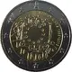 | Description de l’avers | The designs show the European Union flag as a symbol that unites people and cultures with shared visions and ideals for a better common future. Twelve stars that morph into human figures are embracing the birth of a new Europe. At the top right, in a semi-circle, are the issuing country and the years ‘1985-2015’. At the bottom right are the initials of the artist (Georgios Stamatopoulos). The coin’s outer ring bears the 12 stars of the European Union. |