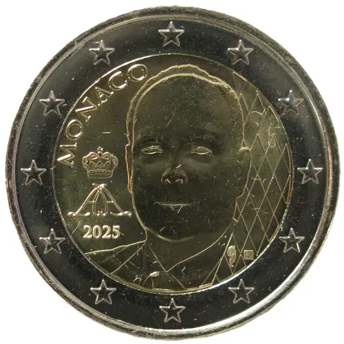 | Descrizione del dritto | In the crown, the twelve stars of the European Community. In the center, a full-face portrait of Prince Albert II; on the right, the Monaco coat of arms and the different engravings; on the left, the crowned monogram and the year below. |