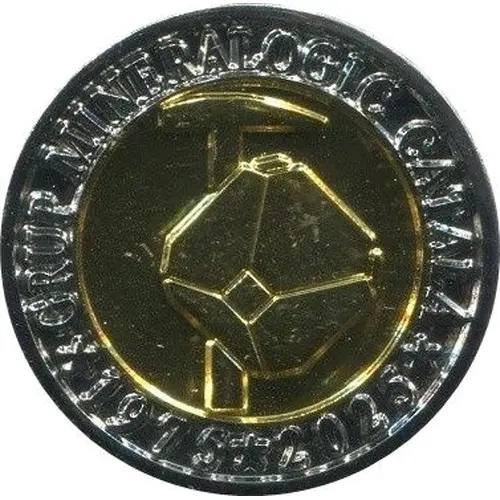 | Obverse description | Logo of the `Grup Mineralògic Català` (mineral and peak) in the center. |
