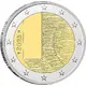 | Descrizione del rovescio | A geographical map of Western Europe spans the outer ring and inner core on the right side of the coin. The inscription 2 EURO is superimposed over the map of Europe, with the numeral “2” located in an open field representing the eastern Atlantic Ocean. 12 stars are located on the right side of the outer ring, with six stars atop the map of Europe and six stars below it; six vertical stripes cut across the inner core of the coin, visually connecting the upper and lower star segments. |