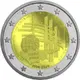 A geographical map of Western Europe spans the outer ring and inner core on the right side of the coin. The inscription 2 EURO is superimposed over the map of Europe, with the numeral “2” located in an open field representing the eastern Atlantic Ocean. 12 stars are located on the right side of the outer ring, with six stars atop the map of Europe and six stars below it; six vertical stripes cut across the inner core of the coin, visually connecting the upper and lower star segments. |