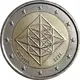 | Reversbeschreibung | A geographical map of Western Europe spans the outer ring and inner core on the right side of the coin. The inscription 2 EURO is superimposed over the map of Europe, with the numeral “2” located in an open field representing the eastern Atlantic Ocean. 12 stars are located on the right side of the outer ring, with six stars atop the map of Europe and six stars below it; six vertical stripes cut across the inner core of the coin, visually connecting the upper and lower star segments. |
