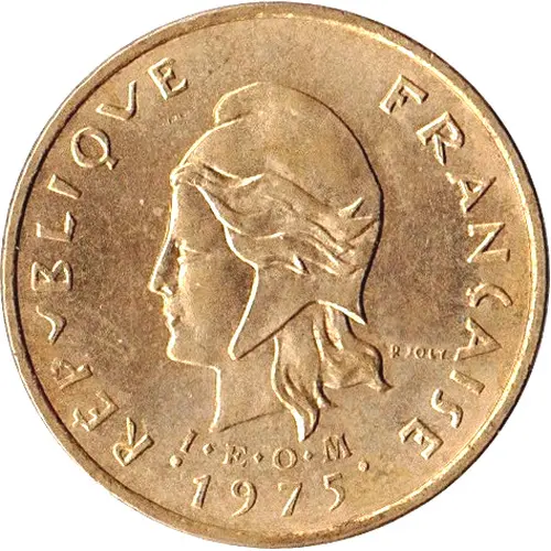 | Obverse lettering | RÉPVBLIQVE FRANÇAISE R·JOLY I·E·O·M 1975 (Translation: French Republic) |