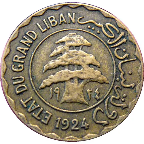 | Legenda awersu | ETAT DU GRAND LIBAN دولة لبنان الكبير ٢٤ ١٩ 1924 (Translation: State of Greater Lebanon The State of Greater Lebanon 19 24) |