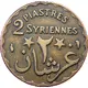 | Legenda rewersu | 2 PIASTRES SYRIENNES ٢ غرشان (Translation: 2 Syrian Piastres 2 Girushan) |