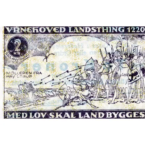 Legenda del dritto VRNEHOVEDE LANDSTHING 1220 2 KR. S.O.S. ANVISNING MØLLERNE FRA HAY STRUP MED LOV SKAL LANDBYGGES