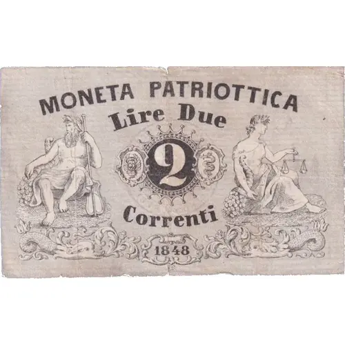| نوشتههای روی اسکناس | MONETA PATRIOTTICA Lire Due 2 Correnti 1848 |