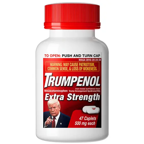 Drug Facts Active ingredient (in each caplet) Purpose MAGAcetaminophen 500 mg TDS reliever/woke reducer Uses may induce: realization that Trump was right about everything sudden urge to expose mainstream media fake news strong opinions that men shouldn`t compete in women`s sports zero tolerance for supporting murder, terrorism, and war rejection of cancel culture and virtue signaling embracing logic over emotional outrage Warnings Overuse may lead to excessive patriotism, including: prioritizing America first, always advocating for border security from illegal aliens repulsion toward radical left lunatics` lies and violent rhetoric supporting law and order without excuses for riots and chaos other side effects like wanting to make America great again Allergy alert: MAGAcetaminophen may cause severe reactions to woke ideology. Symptoms may include: itching from propaganda and limited media narratives uncontrollable support for Second Admendment rights hives from blatent hypocrisy of liberals If a reaction occurs, stop use and seek medical help right away. (Or blame it on the deep state.) This bottle is made out of 2 troy oz of .999 fine silver EDITION NO. 0000 / 4547 © 2026 SPECTRES |