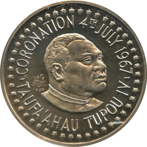 | Chữ khắc mặt trước | CORONATION 4-TH JULY 1967 TAUFA`AHAU TUPOU IV with counterstamp: 1918 TTIV 1968 |
