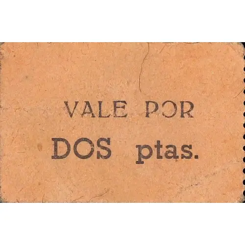 | 表面の銘文 | VALE POR DOS ptas. (Translation: Voucher for Two Pesetas) |