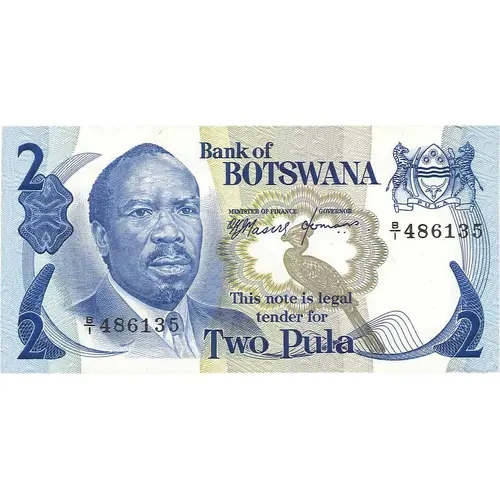 BANK OF BOTSWANA THIS NOTE IS LEGAL TENDER FOR TWO PULA |