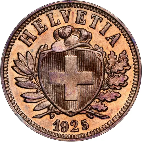 | 表面の銘文 | HELVETIA 1925 (Translation: Switzerland.) |