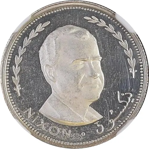 | 表面の説明 | Head of US President Richard Nixon facing right within wreath |