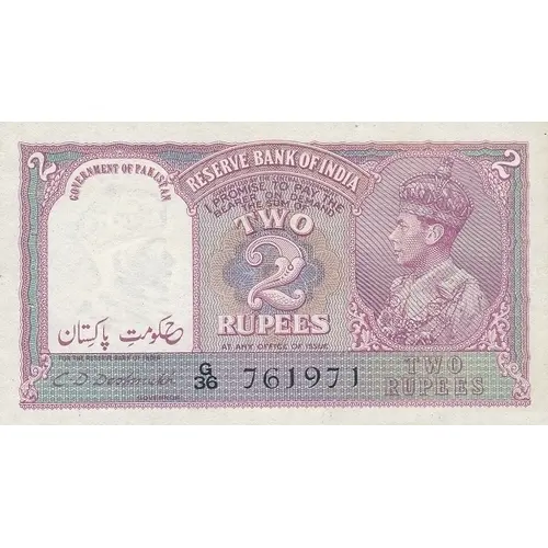 Reserve Bank of India I promise to pay the bearer on demand the sum of two rupees at any office of issue Government of Pakistan |