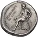| Reverse description | Apollo, wearing a laurel wreath and nude but for a cloak over his shoulders, seated left on omphalos, holding an arrow in his right hand and a bow, the bottom of which rests on the ground, in his left. To left, a laurel branch. |