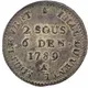| Reverse lettering | ISLES DU VENT ET SOUS LE VENT 2 SOUS 6 DEN 1789 A |