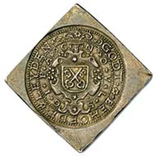 | Ön yüz lejandı | NOVLS - GIPAC GODT BEHOEDE LEYDEN (Translation: Emergency coin of the city of Leyden under the rule of the excellent Prince of Orange.) |