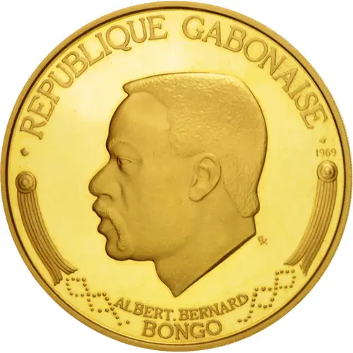 | Obverse lettering | REPUBLIQUE GABONAISE 1969 ALBERT.BERNARD BONGO |