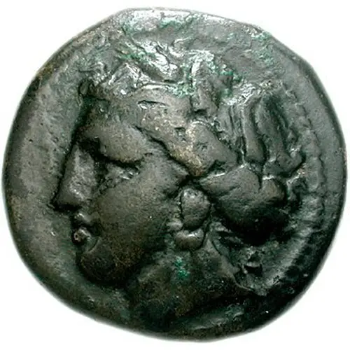 | توضیحات روی سکه | Wreathed head of Persephone left, wearing triple-pendant earring and necklace |