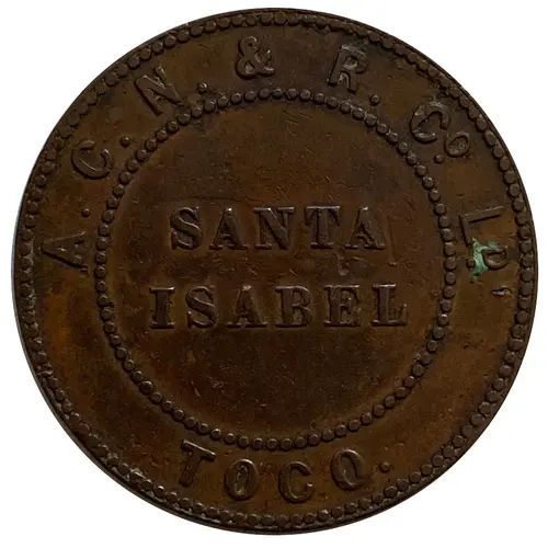 | 正面铭文 | A.C.N. & R Cº LD (Anglo-Chilian Nitrate & Railway Cº Ltd ) Santa Isabel Toco (Translation: A.C.N. & R Cº LD (Anglo-Chilian Nitrate & Railway Cº Ltd ) Santa Isabel Toco) |