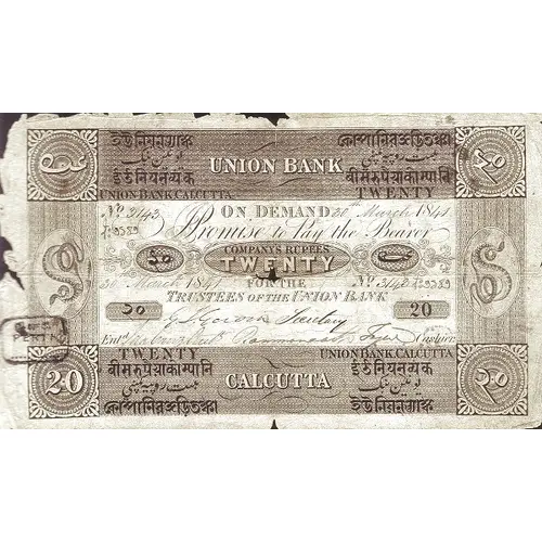 | Légende de l’avers | UNION BANK UNION BANK, CALCUTTA ON DEMAND |