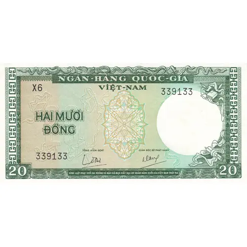 | نوشتههای روی اسکناس | Ngan-Hang Quoc-Gia Viet-Nam Hai o Đồng (Translation: National Bank of Vietnam Twenty Đồng) |