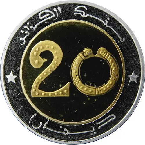 | Obverse lettering | بنك الجزائر 20 دينارا (Translation: Bank of Algeria 20 Dinars) |