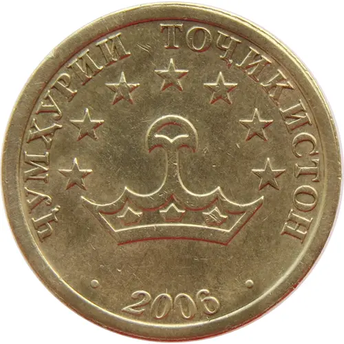 | Leyenda del anverso | • ҶУМҲУРИИ ТОҶИКИСТОН • 2001 (Translation: Republic of Tajikistan) |