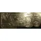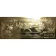 Jaguar (Panthera onca) in front of palm tree on left. Orchids (Orchidaceae sp.) and scarlet macaw (Ara macao) at centre. Left-facing head of Queen Elizabeth II wearing the State Diadem Tiara at upper right. Carved jade head of god Kinich Ahau at right. |