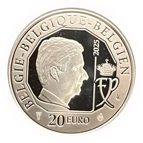 | Leyenda del anverso | BELGIE - BELGIQUE - BELGIEN 2025 FP LL 20 EURO |