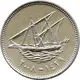 | Arka yüz açıklaması | Boom sailing ship, a type of dhow, sailing to the left with a small flag on the right side, and Islamic and Gregorian dates in Arabic below |