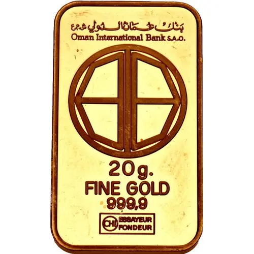بَنك عُمَان الدُولي ش.م.ع Oman International Bank S.A.O. 20g. FINE GOLD 999,9 ESSAYEUR CHI FONDEUR |