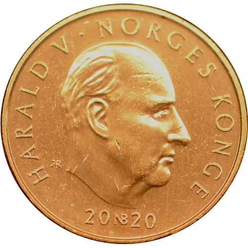 | Opschrift voorzijde | HARALD V ∙ NORGES KONGE IAR 20 NB 20 (Translation: HARALD V ∙ King of Norway IAR 20 NB 20) |