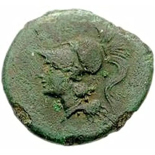 | Popis líce | Minerva wearing Corinthian helmet facing left. |