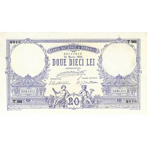 BANCA NATIONALE A ROMANIEI 18 Marte 1893 DOUE DIECI LEI GUVERNATOR DIRECTOR CASIER CENTRAL ROMANIA ROMANIA 20 20 20 GEORGES DUVAL fecit. P. DUJARDIN sc. |