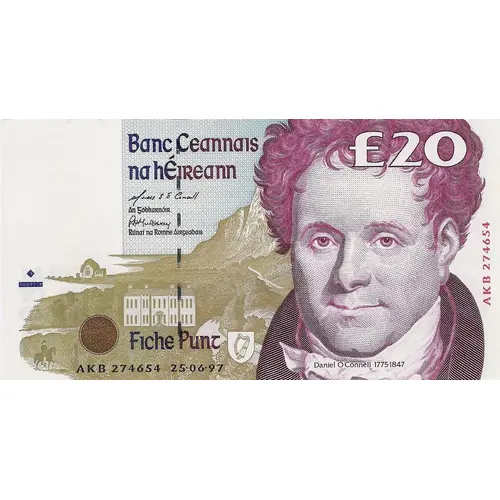 Banc Ceannais na hÉireann Fiche Punt (Translation: Central Bank of Ireland Twenty Pounds) |