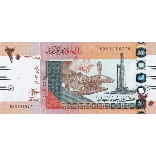 | توضیحات روی اسکناس | Ancient oil extraction machinery and Oil derrick / Nubian pyramids of Sudan near Meroë that were built by the rulers of the ancient Kushite kingdoms |