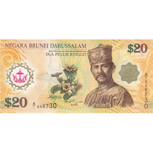 NEGARA BRUNEI DARUSSALAM WANG KERITAS INI SAH DIPERLAKUKAN DENGAN NILAI DUA PULUH RINGGIT TAPAK KUDA LAUT (IPOMOEA PES-CAPRE) SULTAN |