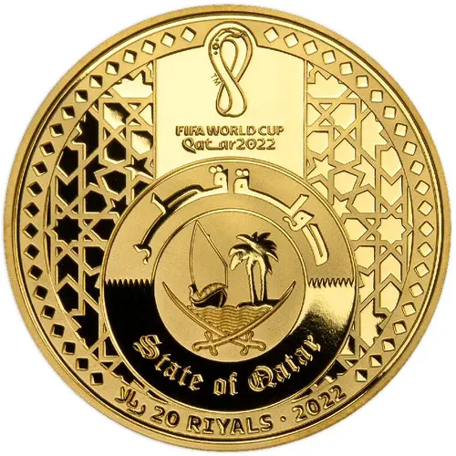 | Reverse lettering | ۲۰۲۲ قطر · FIFA كأس العالم 1OZ FINE GOLD .9999 (Translation: FIFA World Cup Qatar 2022) |