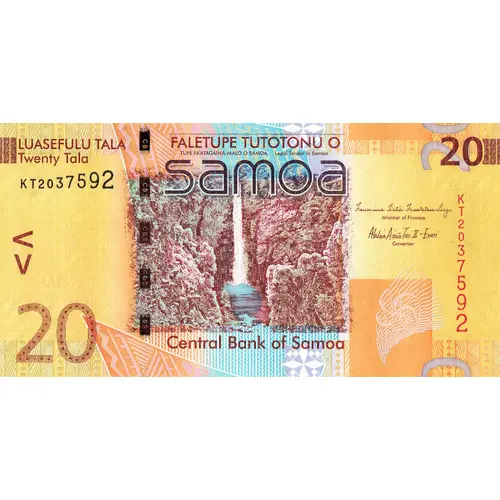 LUASEFULU TALA Twenty Tala FALETUPE TUTOTONU O TUPE FA`ATAGAINA-MALO O SAMOA Legal Tender In Samoa Samoa Central Bank of Samoa |