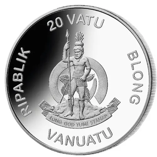 RIPABLIK 20 VATU BLONG LONG GOD YUMI STANAP VANUATU (Translation: In God we stand Republic of Vanuatu) |