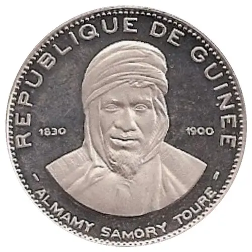 | 正面铭文 | REPUBLIQUE DE GUINEE 1830 1900 - ALMAMY SAMORY TOURE - (Translation: Republic of Guinea) |