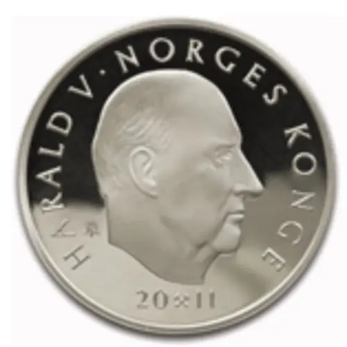 | نوشتههای روی سکه | HARALD V · NORGES KONGE IAR 20⚒11 (Translation: Harald V, King of Norway) |