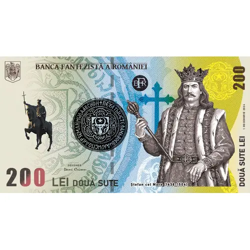 BANCA FANTEZISTA A ROMANIEI 200 BFR DESIGNER Dani Crisan 200 LEI DOUA SUTE Mihai I al Romaniei (1921-2017) DOUA SUTE LEI 1 DECEMBRIE 2024 |