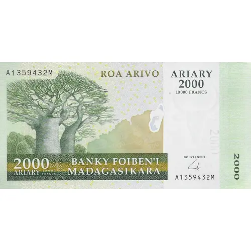 | نوشتههای روی اسکناس | BANKY FOIBEN`I MADAGASIKARA ROA ARIVO ARIARY 10000 FRANCS |