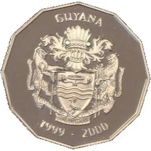| توضیحات روی سکه | Coat of arms of Guyana, dates below |